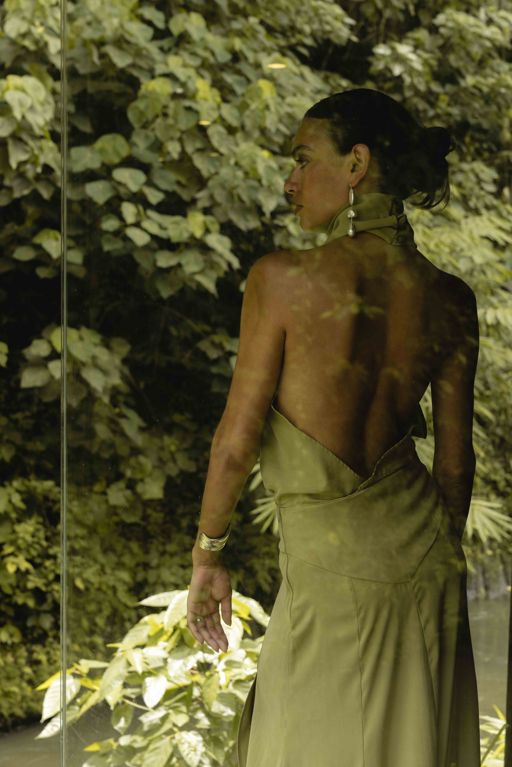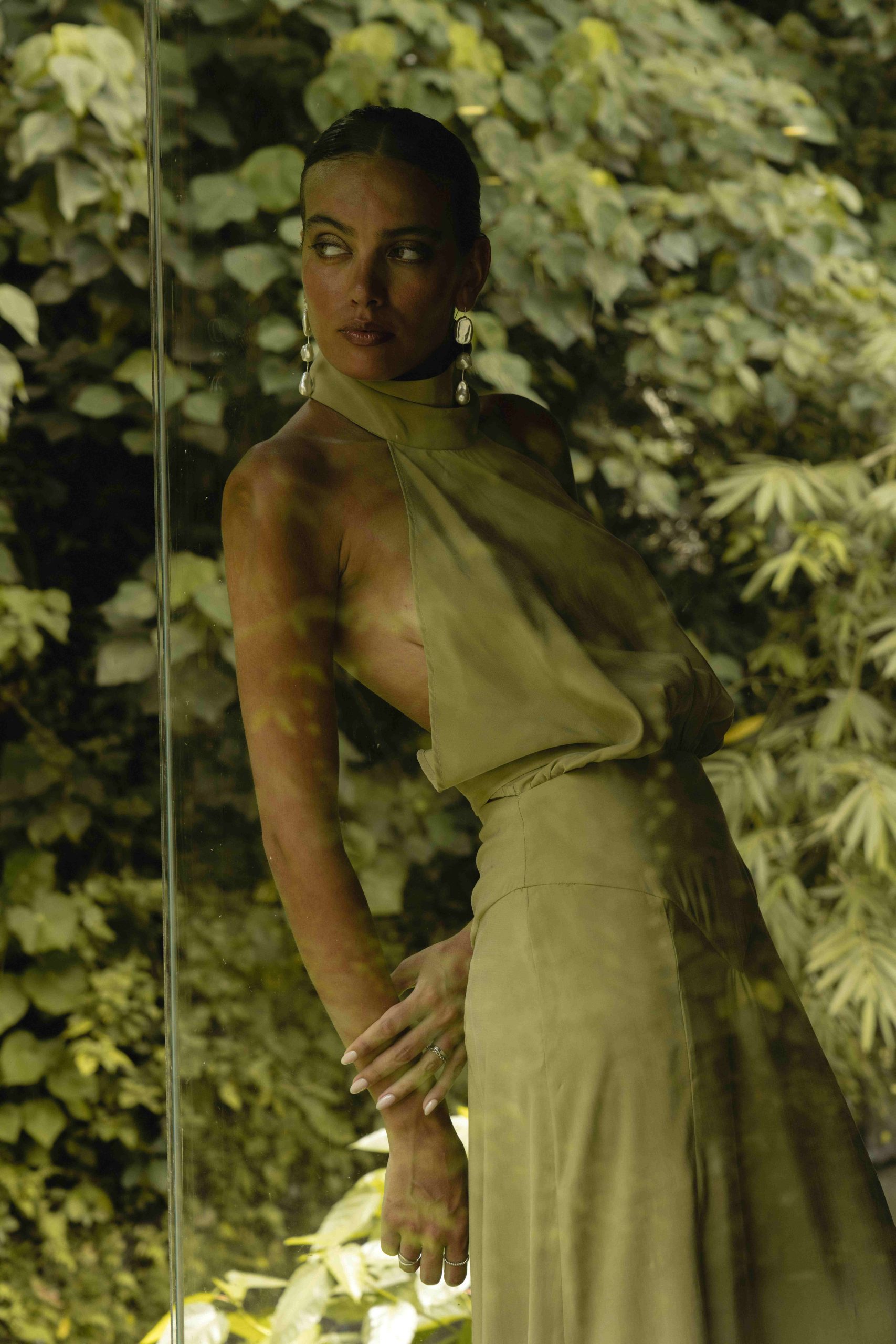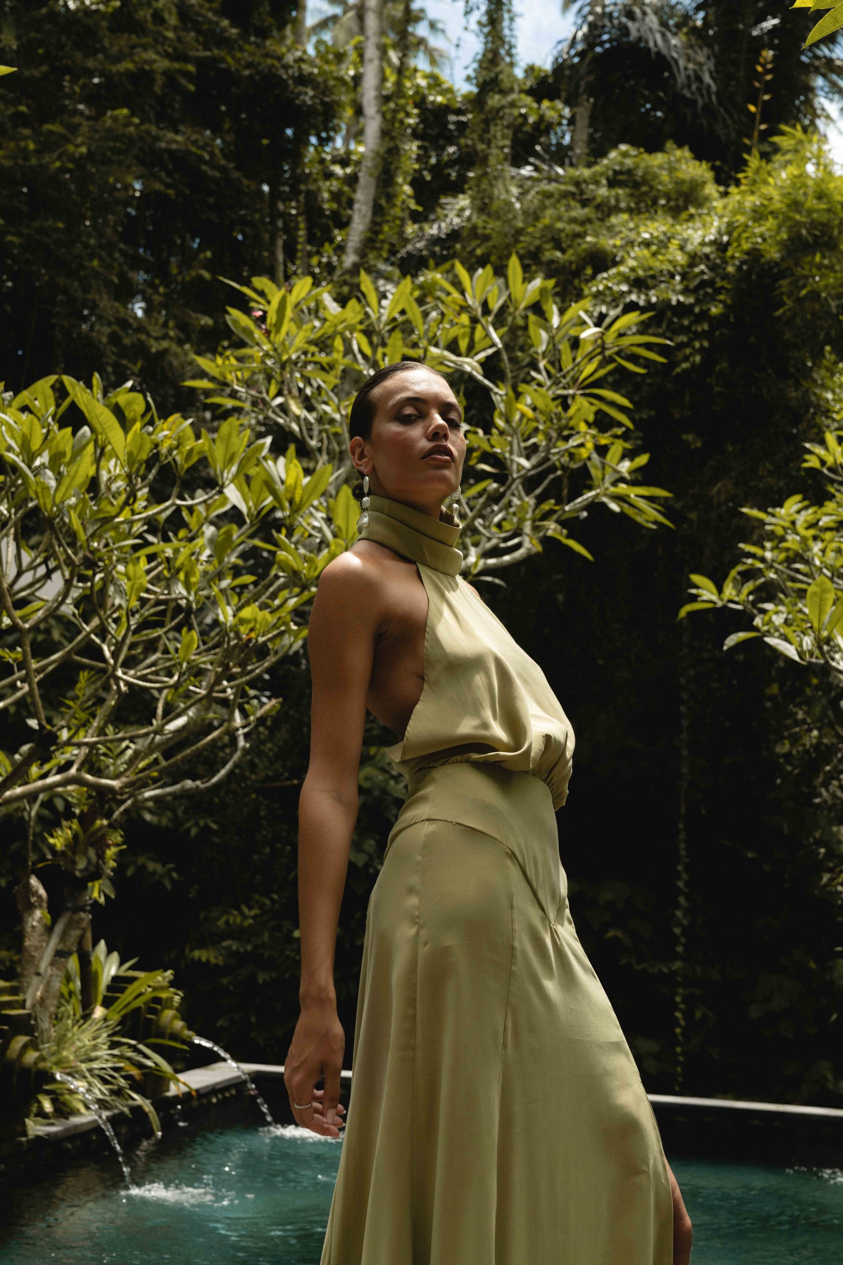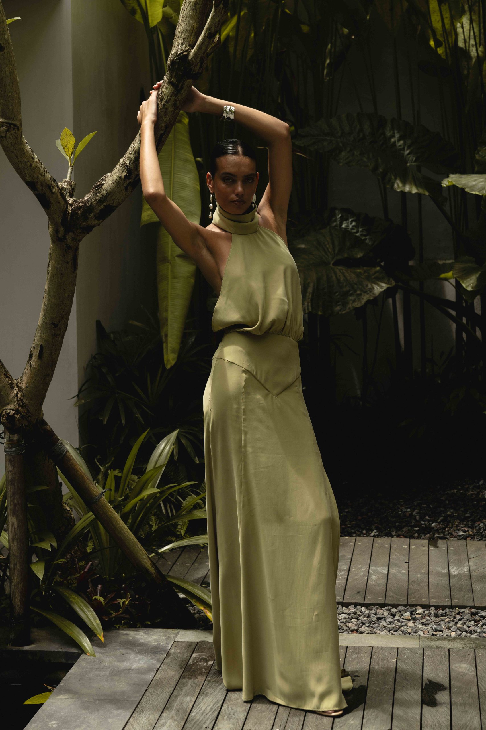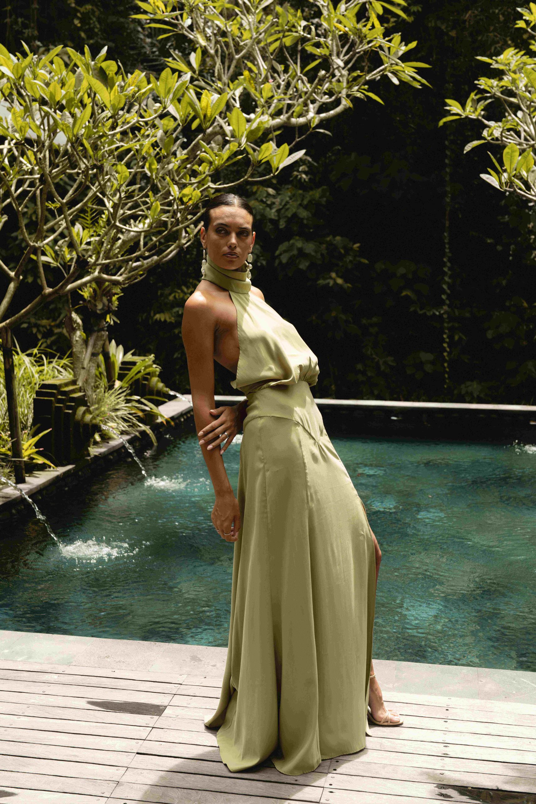 Crafted from cupro in a soft pistachio shade, it brings a feeling of lightness and a subtle sheen that shifts with movement. Designed for moments when you want to make an impression — understated, yet unforgettable.