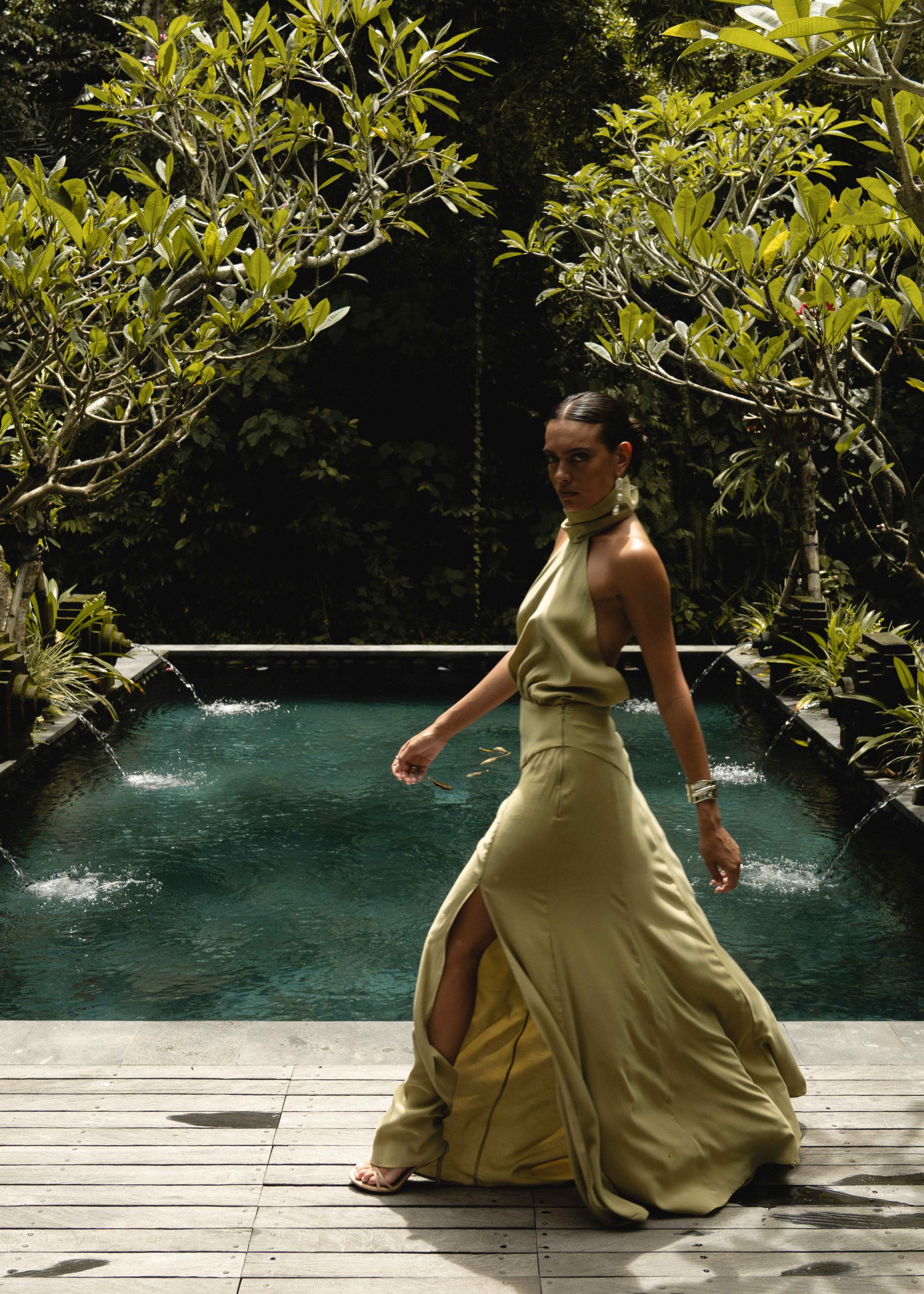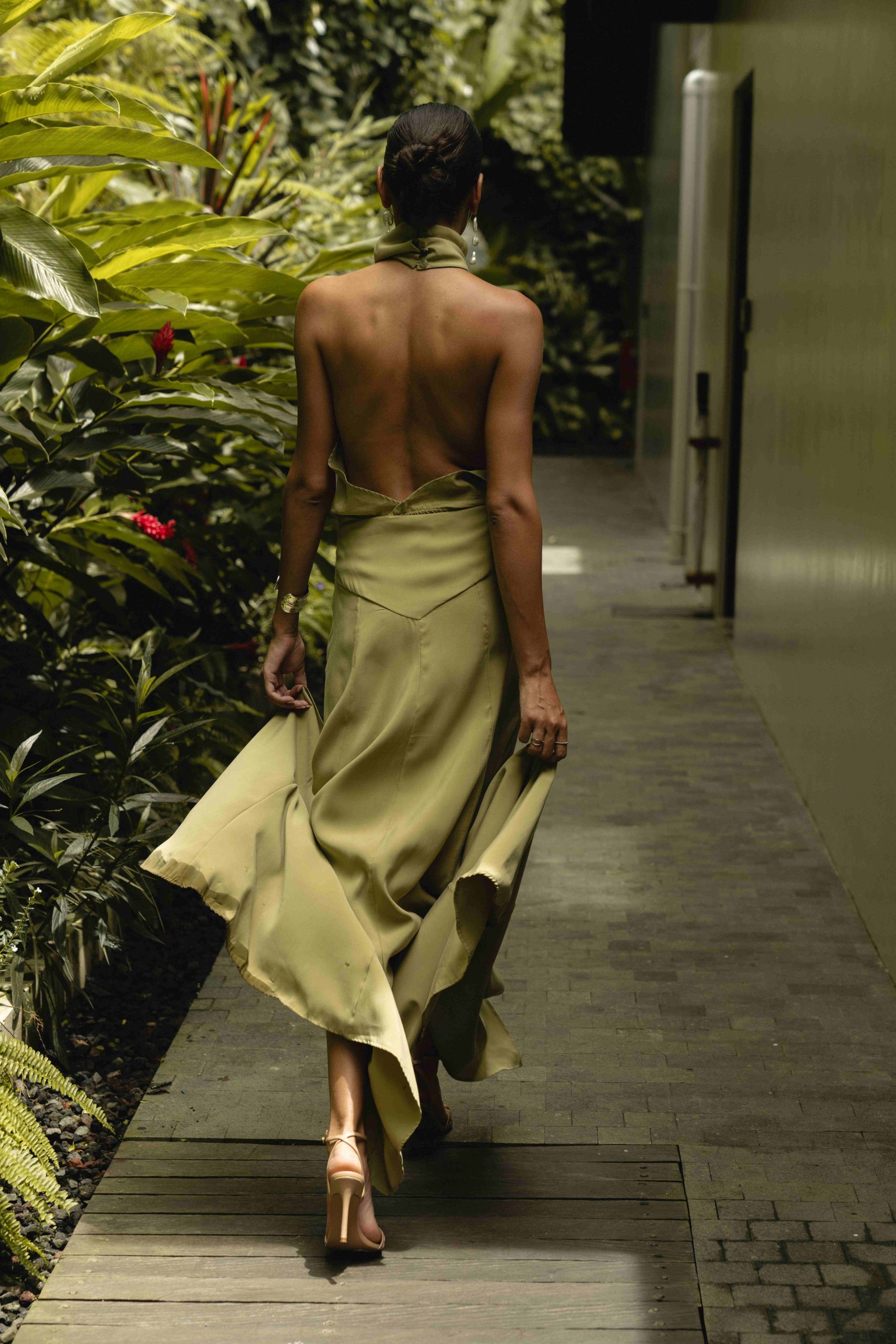 Tailored to follow the line of the body, the ICON dress reveals the back completely, creating a bold yet sophisticated impression. High slits further enhance movement and add a sense of dynamism, while the fluid fabric allows the dress to glide effortlessly with every step.
